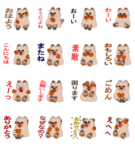 スタンプ説明 ポメラニアンの犬のキャラクターです。