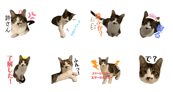 白ネコのあいうえお・・・ってるスタンプ