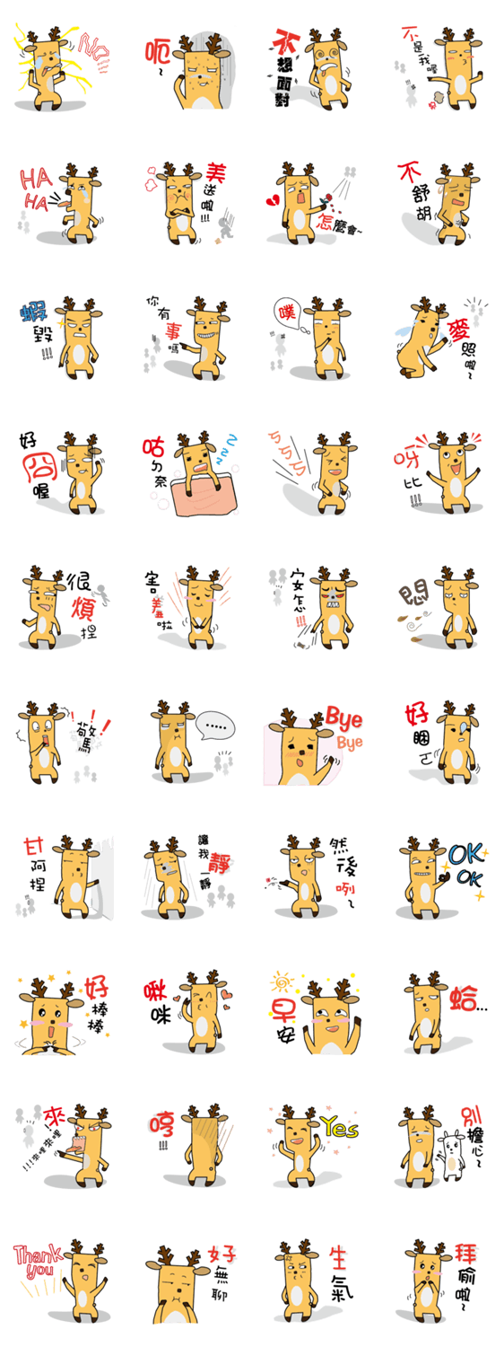 Deer is so embarrass and funny.Do something difficult to success.Like to laugh.And he is very enjoy his life.Friend is mei-mei.Let him join your life together.
