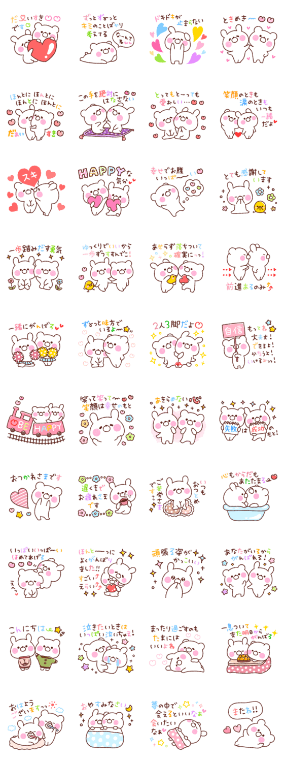 | スタンプ説明 | 大好きな人へ送るスタンプ❤ポエム(詩)風の応援する背中を押す励ます優しい言葉がもりだくさん!大好きな気持ちを伝えてね❤うさぎ/くま/カップル友達向け/作:さあや |
