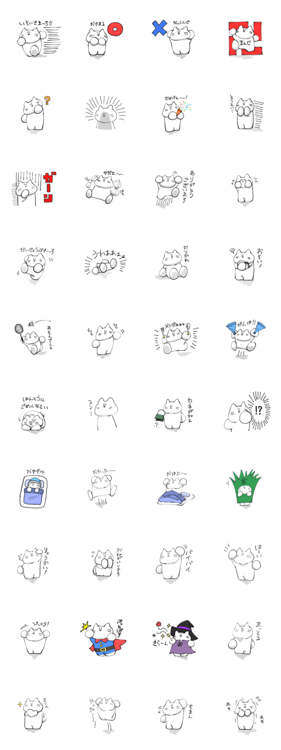 白ネコのあいうえお・・・ってるスタンプ
