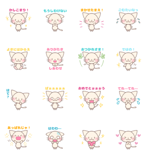 白ネコのあいうえお・・・ってるスタンプ