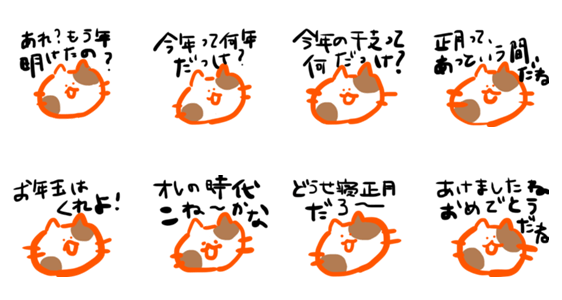 ひねくれ猫の遅いお正月 -LINEスタンプマニア