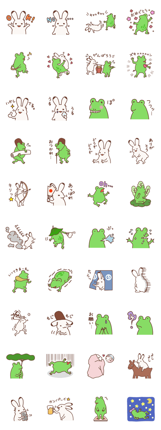 鳥獣戯画をゆるーくアレンジしました。ウサギとカエルの日常使いのスタンプです。