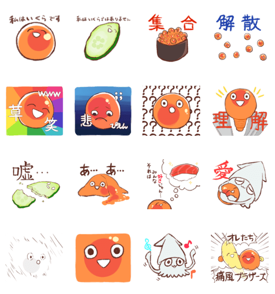 いくらと愉快な海の仲間たちのスタンプです