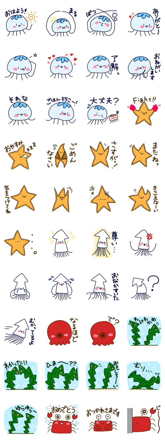 日常で使える海の友だちのスタンプです。