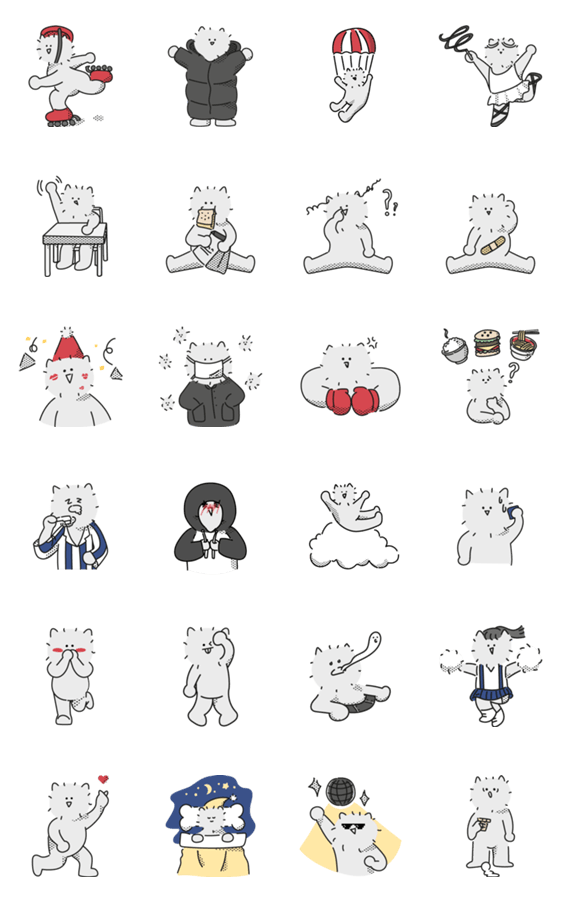 白ネコのあいうえお・・・ってるスタンプ