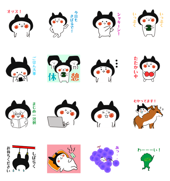 白ネコのあいうえお・・・ってるスタンプ