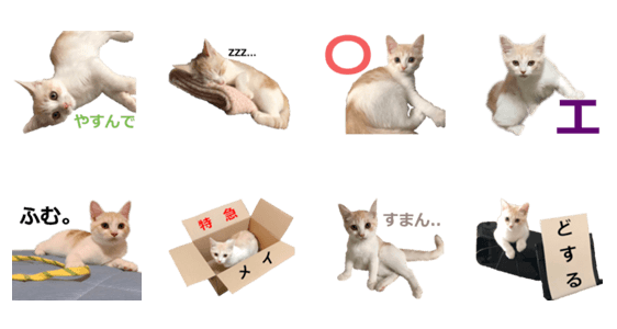 白ネコのあいうえお・・・ってるスタンプ