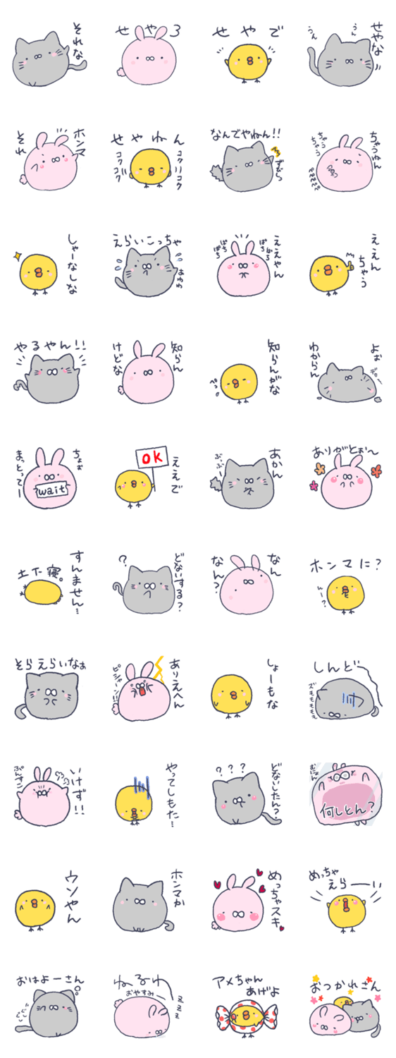 ゆるくてまるくてころころした動物たちの関西弁日常スタンプです。