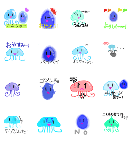 スタンプ説明 くらげくんとしずくちゃんのスタンプです。