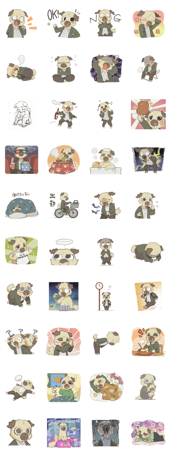 男性 スタンプ 中年 野太 タレ パグ