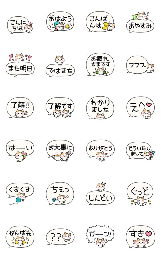 かわいい三毛猫のフキダシスタンプ!日常で使える言葉とシンプルで大きな文字でとっても使いやすいよ♪