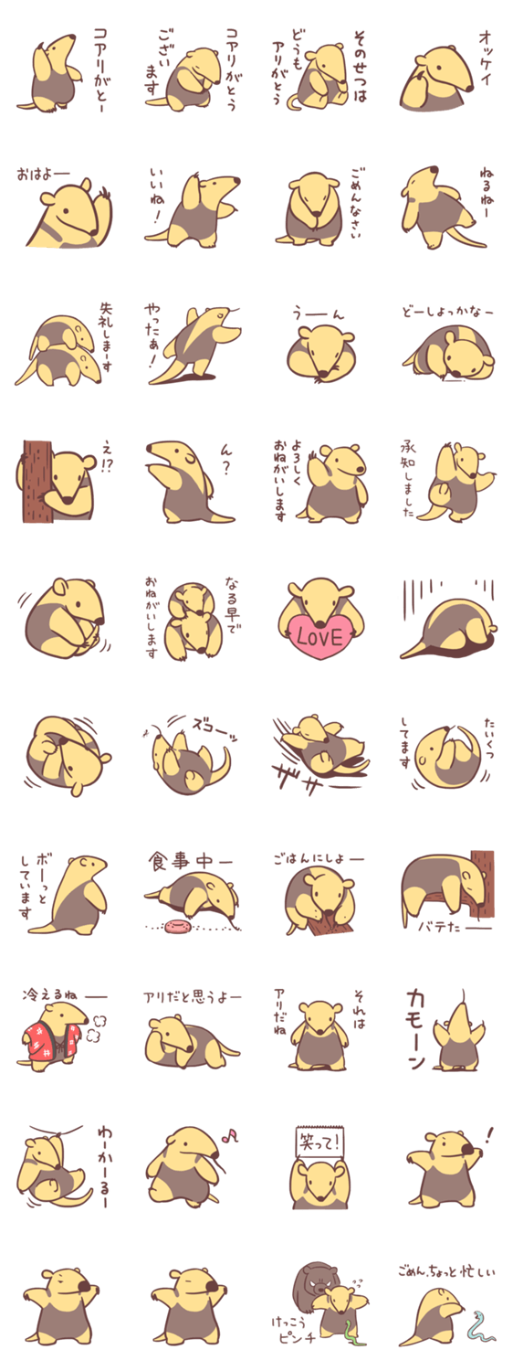 コアリクイはかわいいな。一緒にのんびり気ままに暮らしたい。かわいいスタンプ。ぜひ。