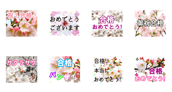 本物の花を添えて送る合格祝い用のアニメーションスタンプです。桜(Cherry blossom)編。合格おめでとう・サクラサク etc.写真 実写 リアル フラワー flower 動く
