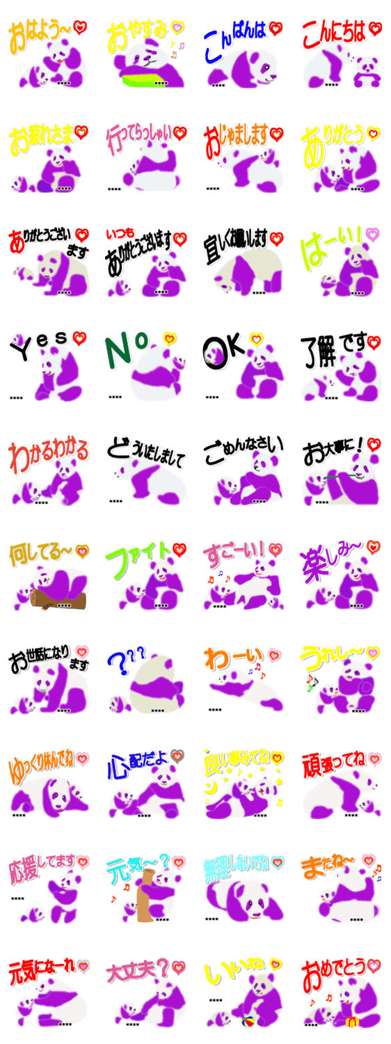 世界で一つだけのふわふわバイオレットパンダのキャラクターで、毎日の日常会話に使用できます。名前・名字等を記載して使用してください