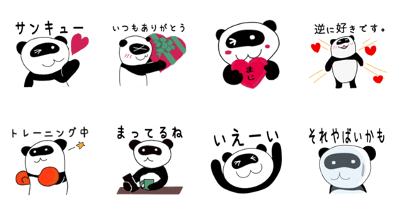 スタンプ説明 ちょっと男っぽいパンダ。今日は気持ちを伝えます。