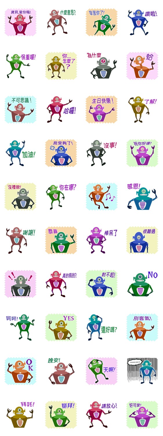 | スタンプ説明 | Hello! vitality robots come, You can put these stickers communicate with everyone! |