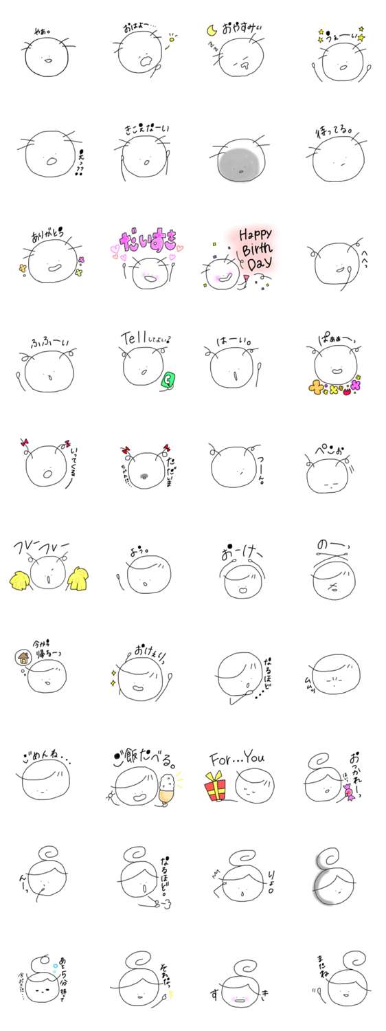 シンプルな顔。たまに腹立つけど何とも言えない可愛さ。 シンプルだから使いやすいスタンプになっています。