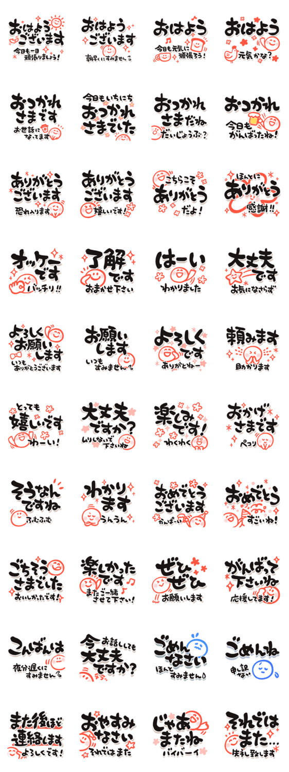 美しい筆文字、毛筆、習字のでか文字で気持ちを伝えるシンプル仕上げ。大人のための、丁寧、気遣い、慮る一言を添えた、相手を気遣う長文スタンプです。