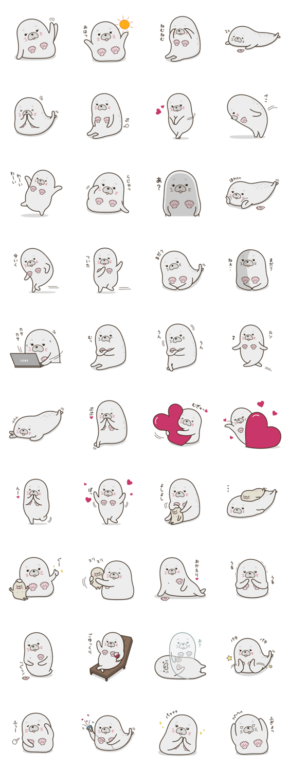 ちょっとセクシーでかわいい、ごまあざらしのごまちゃんのスタンプ。 ちびゴマのちーちゃんも登場。