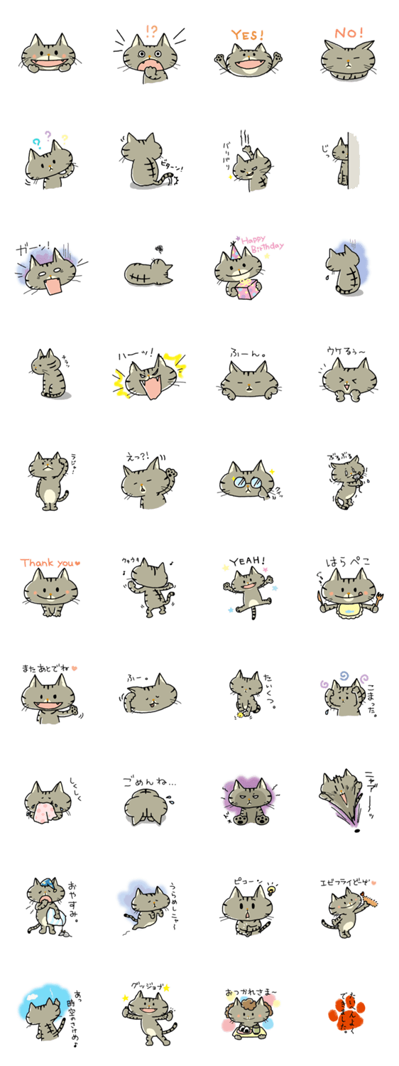 お顔の大きいねこ。どこにでもいるキジトラだらけのスタンプです。(=^x^=) ※文字修正しました。