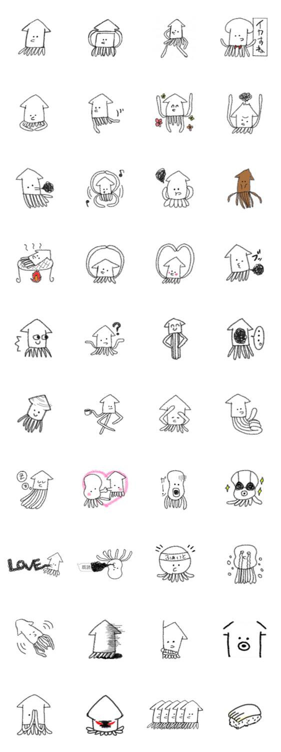 手書き風のイカ。言葉で返すのが面倒な時にどうぞ。