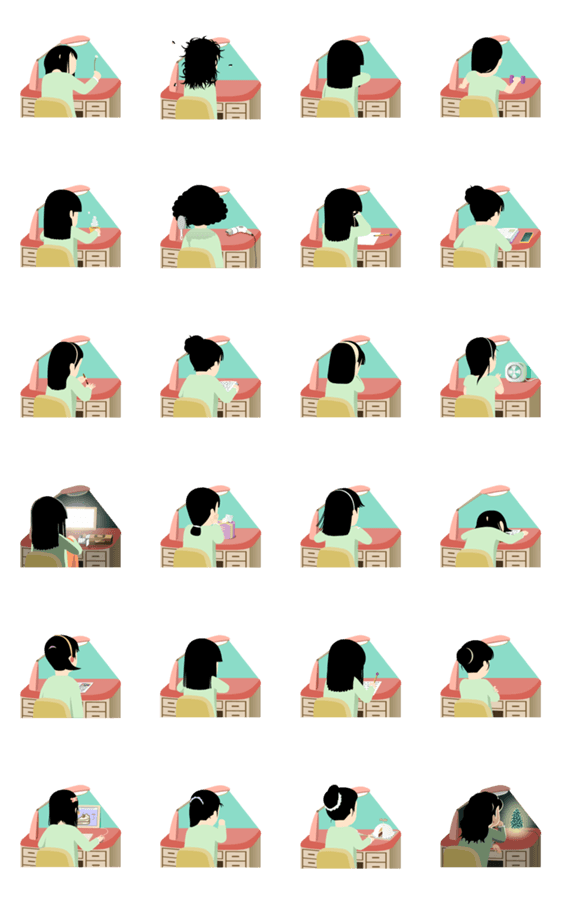 かおつきなきはなし - じょせい (つくえで) -LINEスタンプマニア