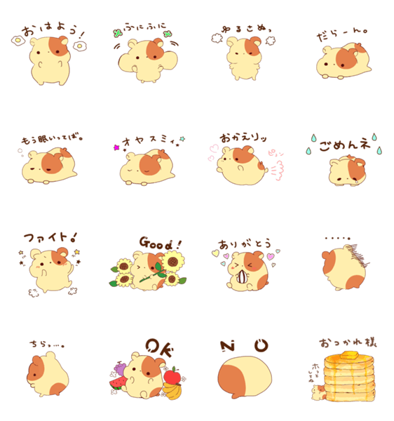 少しグータラな、もちもち丸くてかわいいハムちゃんスタンプです。