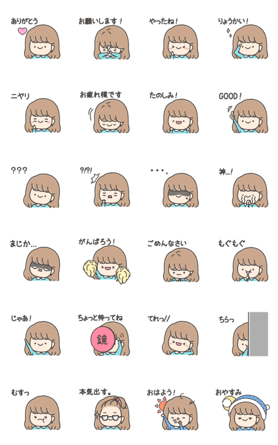 気持ちを一言で伝えるおんなのこのスタンプです。