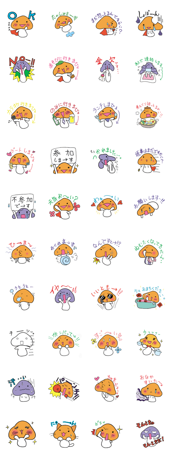 口下手な人も時間がなくて、文字を打てない人でもなかなか気持ちを伝えられない人でもこのスタンプさえあれば大丈夫!生シイタケさんがあなたの気持ちを代弁します!