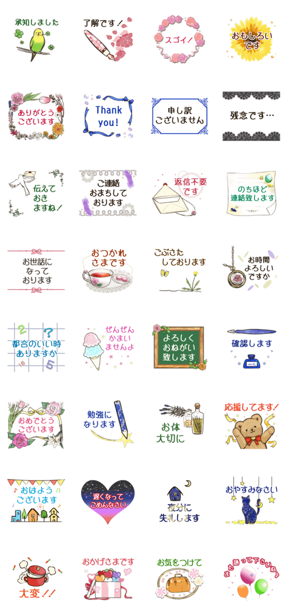 花、植物などなど。ナチュラル&アンティーク雑貨風の、大人かわいいおしゃれスタンプです。 敬語なのでママ友にも仕事にも。