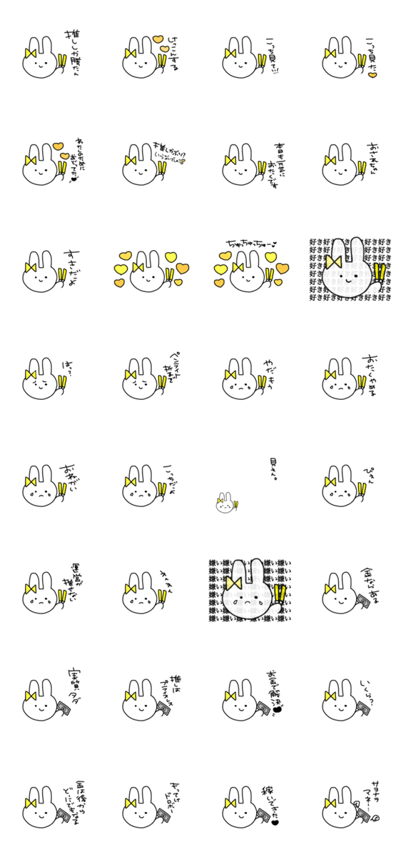 情緒不安定なおたくをうさぎで表現しました。黄色推しの方向けです。