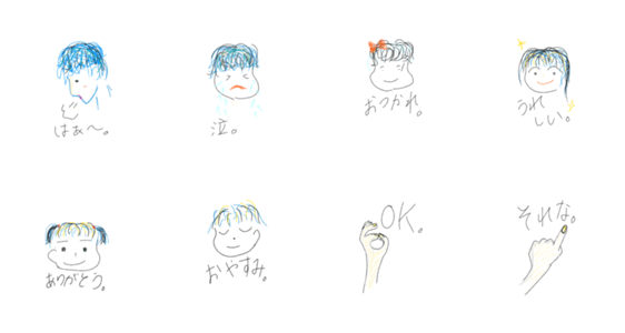 日常の感情や表現を手や顔を使って書き表しました。