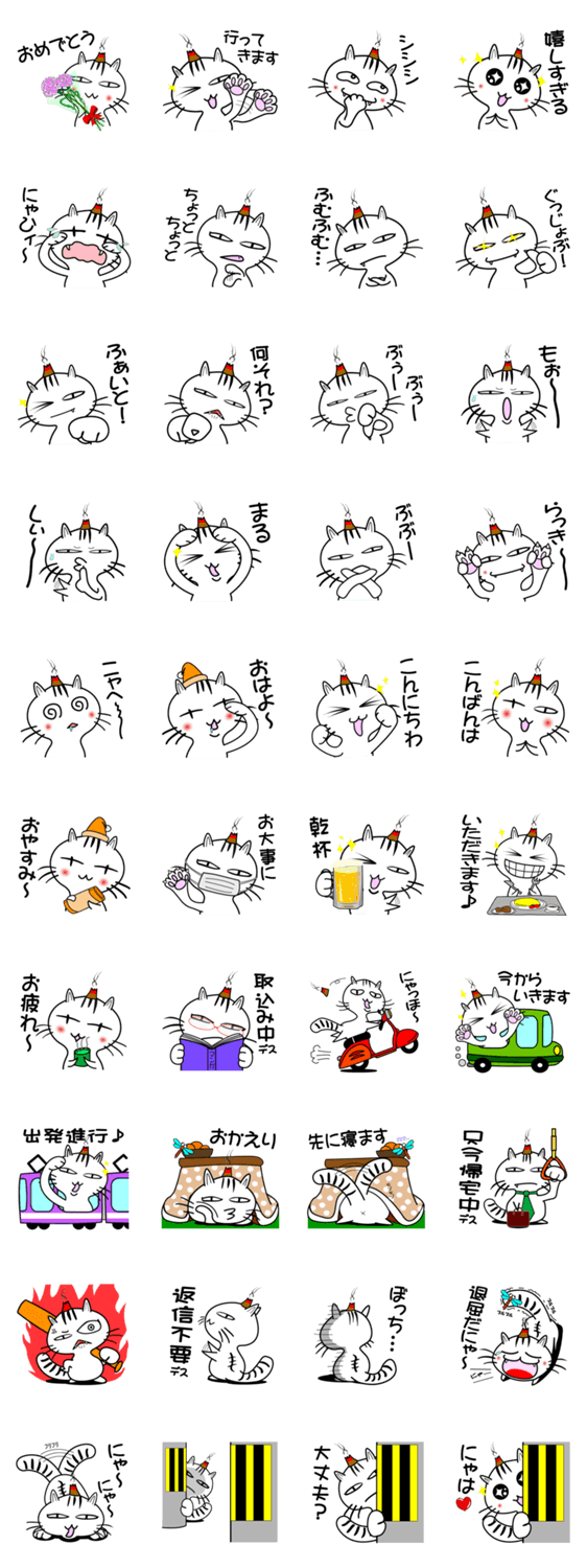 頭にお灸を乗せた憎いやつ!お灸猫「文太」の第4弾スタンプ!今回は日常会話に使えそうなものを作ってみました^^vol.1~vol.3もよろしく\(^o^)/