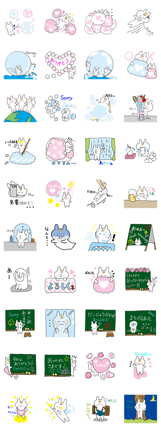 | スタンプ説明 | 口癖が「うさうさ」、ふんわりうさぎのスタンプPart3です。 |
