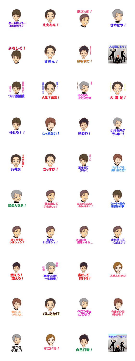| スタンプ説明 | 明るく、元気に、楽しく! コメディ「俺バグ」の人物たちのスタンプが登場! 日常会話がこのスタンプで完結^^ 使う人も、もらう人も、みんなが元気になるスタンプです! |