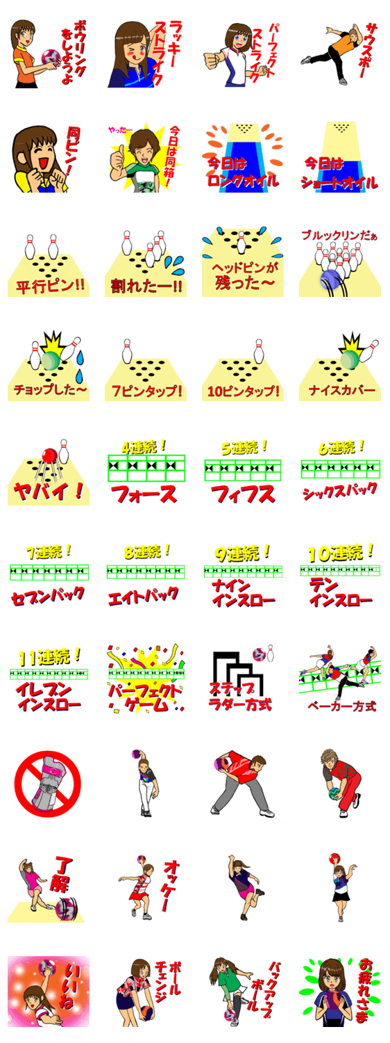ボウリングのスタンプの第2弾です。ボウリング用語やボウリングによくありがちな場面をスタンプにしてみました。