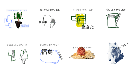 | スタンプ説明 | スマホで指で描いたスタンプです!これは東北6県を応援するスタンプです! |