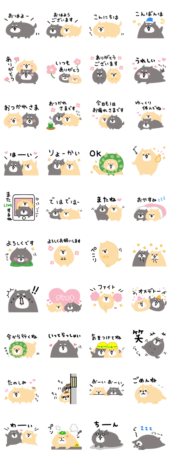 日常会話で使いやすいスタンプです。敬語も混ざって色々使えます。可愛いしば犬たちをぜひ使ってみてください。