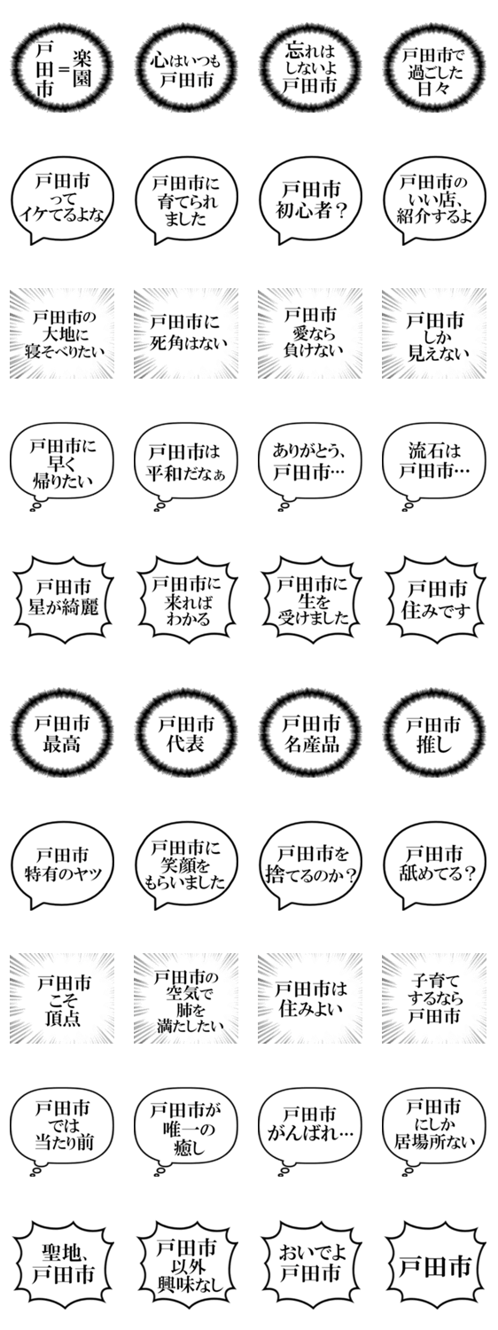 埼玉県戸田市民もそうでない方も使える、愛に溢れた吹き出しスタンプです。