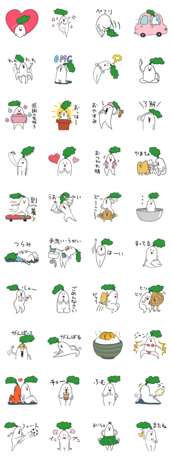 脚が魅力的な大根のスタンプ第4弾です。今回は使いやすいの多めです!