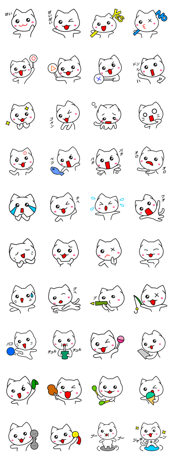 ともきゅーシリーズ、かわいいしろねこのバタバタマンガアクション感満載の楽しいスタンプ集。感情豊で喜怒哀楽、つっこみ、返信などによく使うメッセージ厳選。