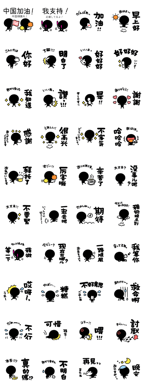 私はあなたをずっと応援します♡ずっと使える日本語訳付き中国語!黒棒人間の無難なスタンプです!コロナウイルスに負けないスタンプ‼︎