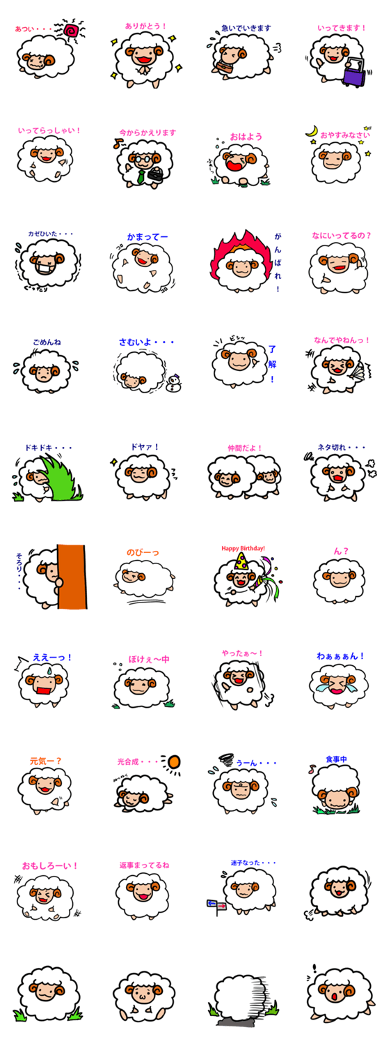 ひつじさんの日常会話用スタンプ。羊なのに2本足で立っているなどなかなかシュールなポーズが多いです。一部、文字なしスタンプもあります。
