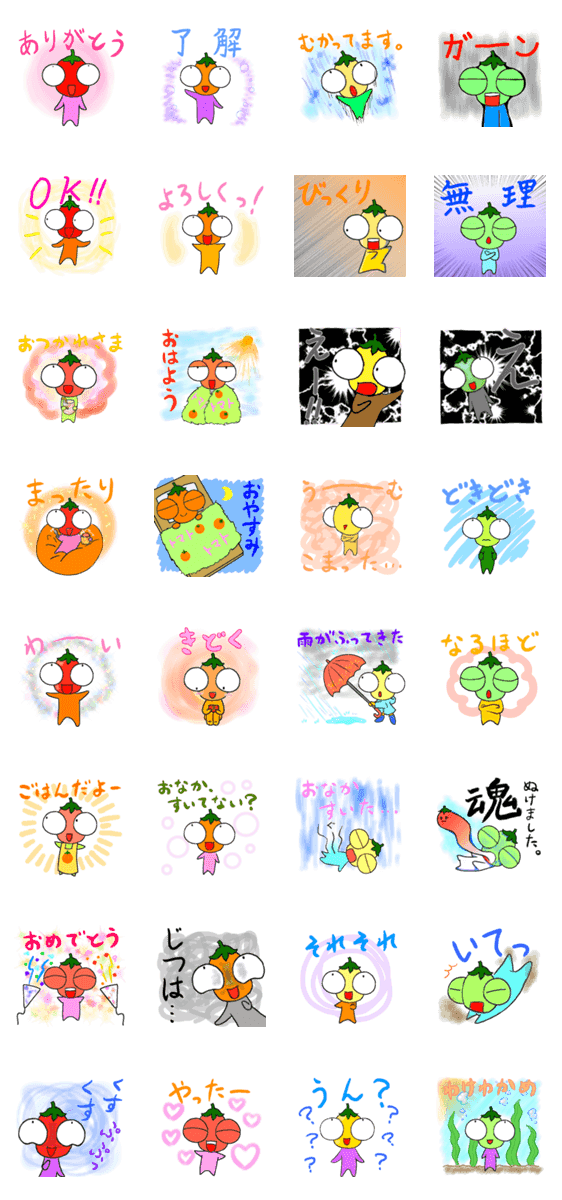 宇宙に住んでいる不思議なトマト。その時の気持ちで服や顔の色が変わる、たいてい赤。