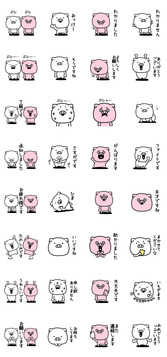 いつもぶひぶひ言ってる二匹のブタちゃんです。絵文字もあります。
