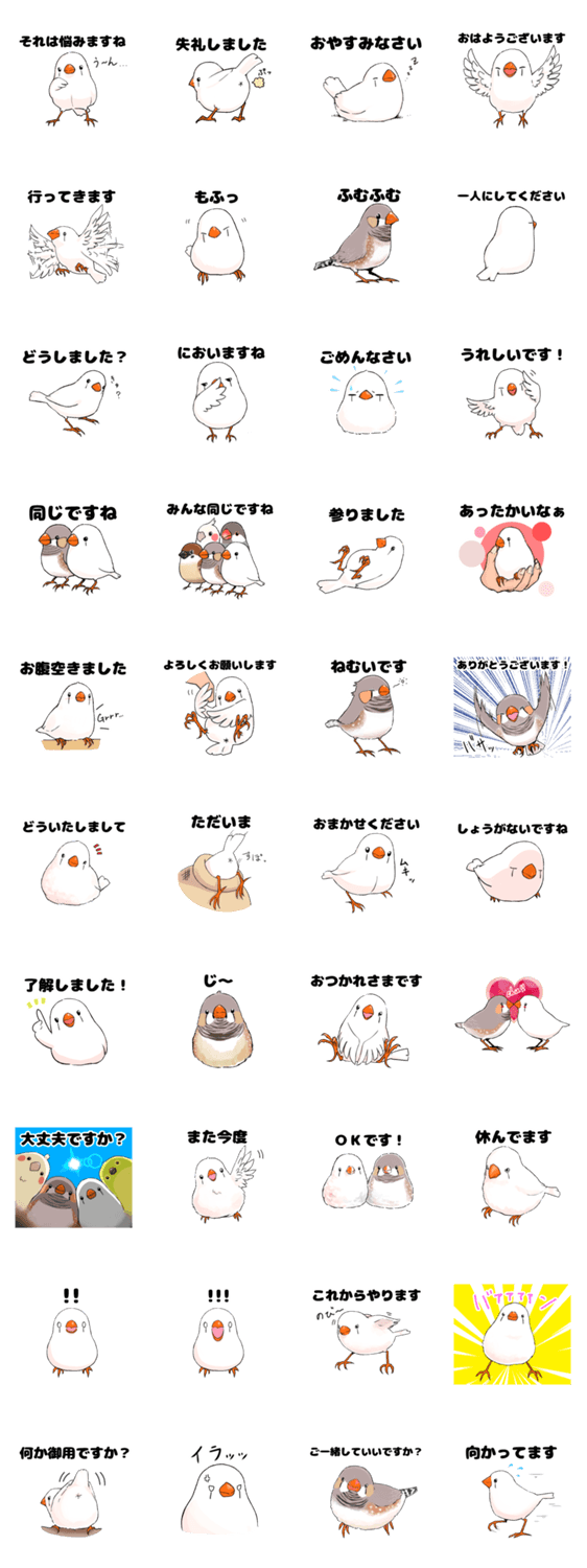 かわいいキンカチョウたちのスタンプです。小鳥好きや動物好きの方におすすめです!