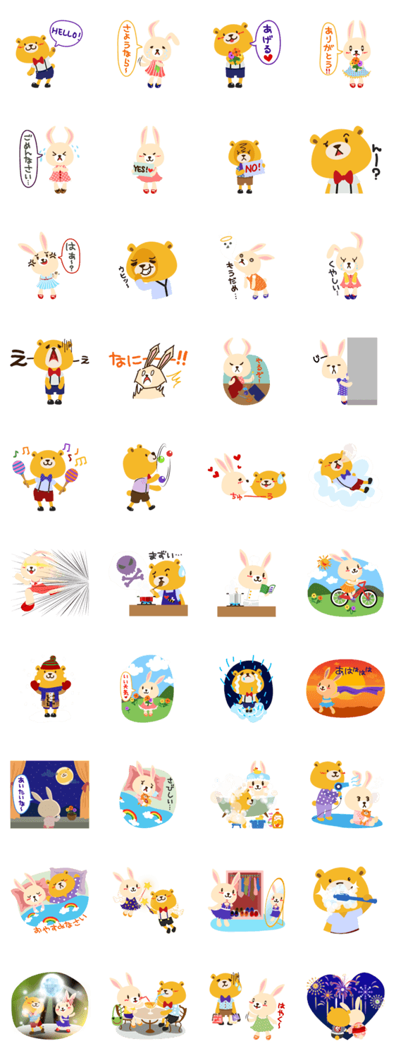 仲良しクマさんのポンポンとウサちゃんのモモの日常スタンプ!とっても可愛くて、使えばなんだか暖かい気持ち!!!