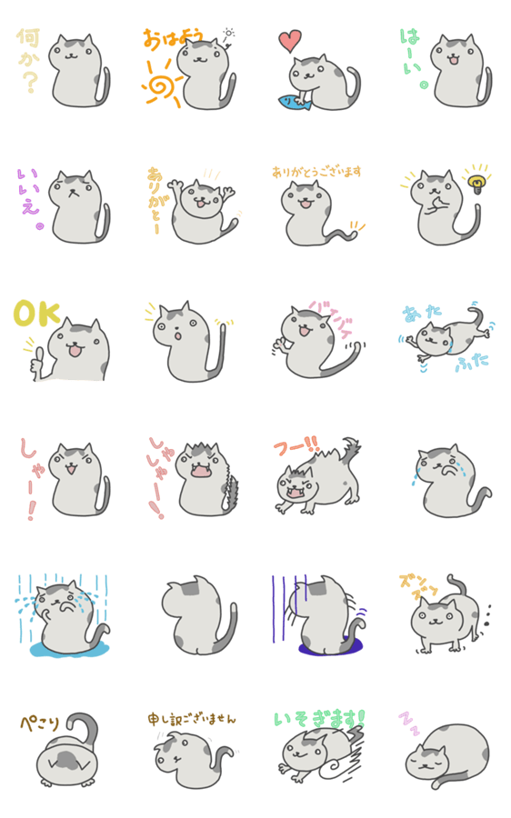 白ネコのあいうえお・・・ってるスタンプ